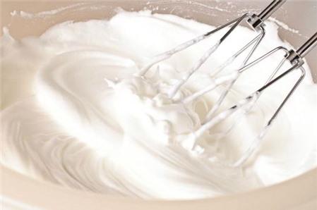 Sử dụng máy đánh trứng đánh ở mức tốc độ trung bình, theo vòng tròn, từ phía trong ra phía ngoài, bạn hơi tăng dần tốc đọ và dừng lại ngay khi thấy kem đủ mượt, bông nha. Vì nếu đánh quá tay thì kem sẽ bị chắc lại như bơ, mất đi độ mềm mượt và rất khó sử dụng.