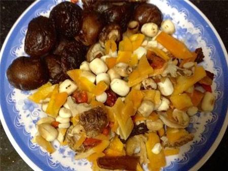2. Nấm hương, hạt sen, sâm quy … rửa sạch ngâm trong nước chừng 5 phút rồi vớt ra cho ráo nước.