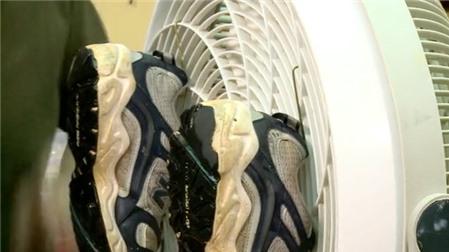 - Tháo dây giày, mở rộng giày để luồng gió từ quạt thổi vào được nhiều nhất.