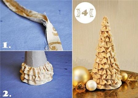 cốt cây thông, vừa nhún chun lại để tạo thành những vòng bèo vải mềm mại. Sau khi hoàn thành, cây thông trông sẽ mềm mại và điệu đà như các tầng của chiếc váy đấy!