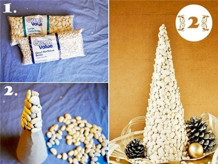 Bạn có thể tận dụng ngay những viên đỗ để trang trí lên cây thông Noel. Tiến hành dán một lượt đỗ to trước rồi dán đỗ nhỏ xen kẽ vào sau. Bạn có thể lựa chọn các màu sắc