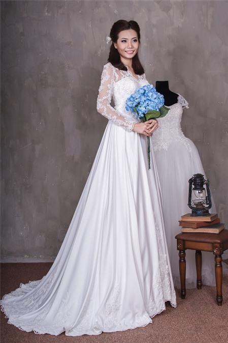 Váy cưới phù hợp với cô dâu vai to là những mẫu váy có tay. Những mẫu váy này luôn mang lại cho các cô dâu vẻ đẹp thanh lịch và khá kín đáo. Phần đắp ren ở vai và ngực, tạo điểm nhấn vào vòng một