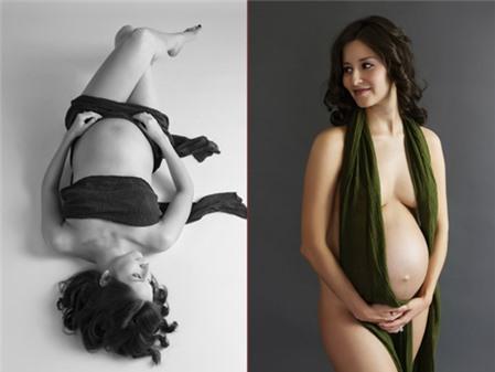 Nếu bạn là một bà bầu cá tính, hãy thử một vài tấm ảnh nuy xem thế nào. Chị em có thể kết hợp thêm với các tấm vải màu mềm mại nhất thay cho quần áo rườm rà. Thử tưởng tượng nhé, với một dải lụa quấn quanh ngực và choàng qua chiếc bụng tròn xoe, bạn trông thật gợi cảm, nữ tính và cũng vô cùng viên mãn.