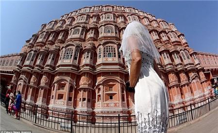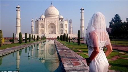 tại mỗi địa điểm cô tới thăm như đền thờ Taj Mahal nổi tiếng ở Ấn Độ.