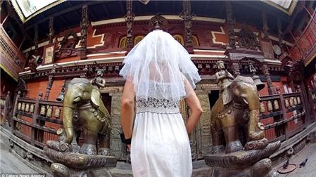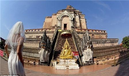 Người phụ nữ cô đơn đến từ CH Czech chụp ảnh trước một ngôi chùa