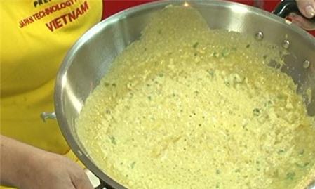 vào cho ngậy rồi quấy đều rồi cho hành lá
