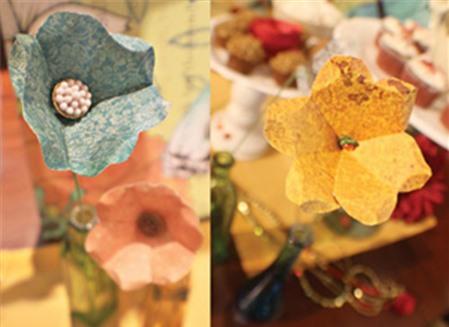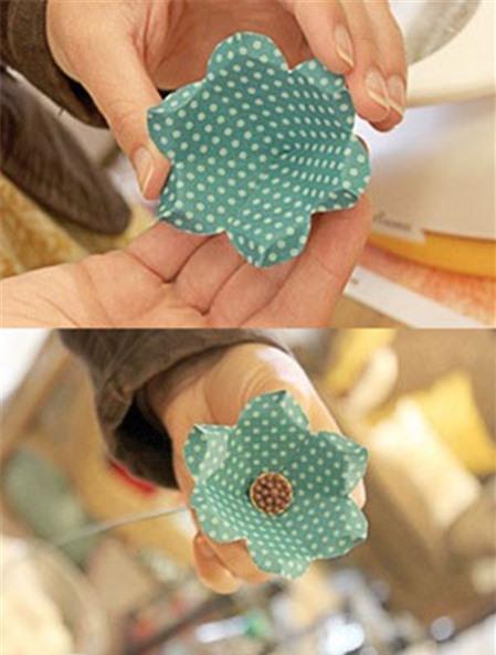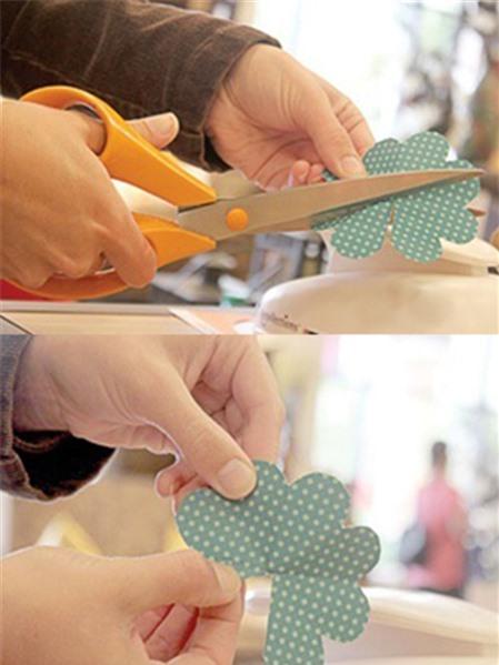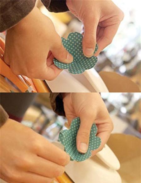 Dùng keo sữa dán nối 6 cánh hoa, dùng ngón tay bóp nhẹ ở đầu mỗi cánh.