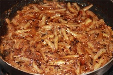 Cá cơm mua về cắt bỏ đầu, đuôi, rửa sạch, để ráo.