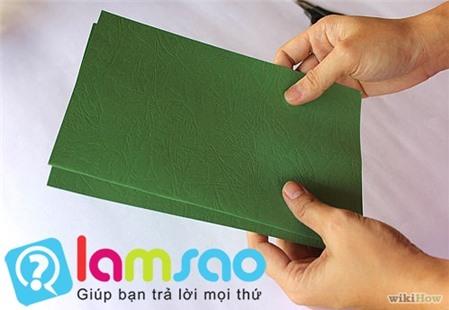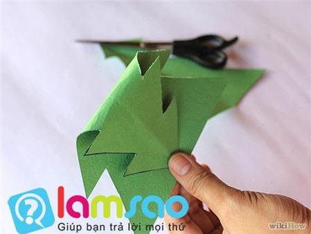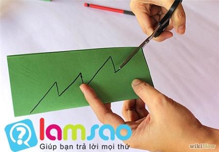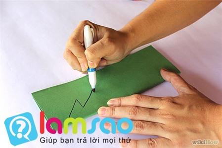 tấm giấy bìa cứng màu xanh lá, sau đó cắt theo đường gấp. Bạn nhớ dùng ngón tay miết cho đường gấp đó thật "nuột nà" nhé!
