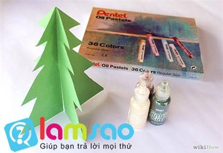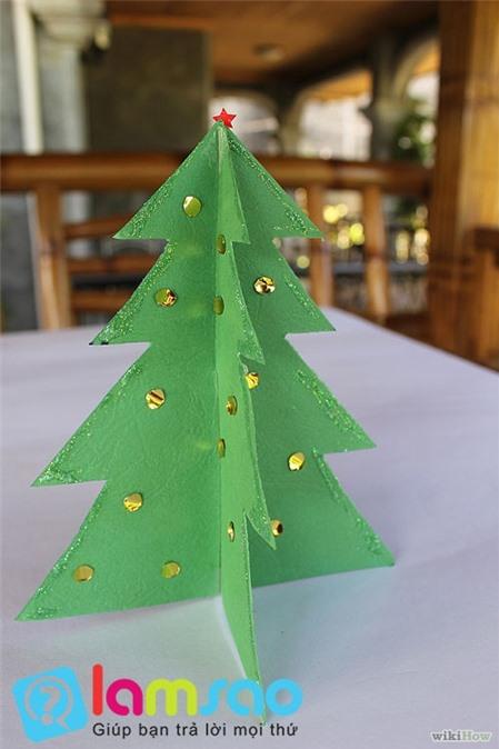 Bạn có thể dùng hạt cườm hoặc giấy màu bóng đính thêm lên cây những hình ngôi sao, hình tròn để cây thông thêm rực rỡ. Cây thông Noel