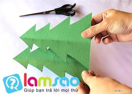 Để thực hiện cách làm cây thông Noel, bạn vẽ hình cây thông Noel đối xứng qua đường gấp.
