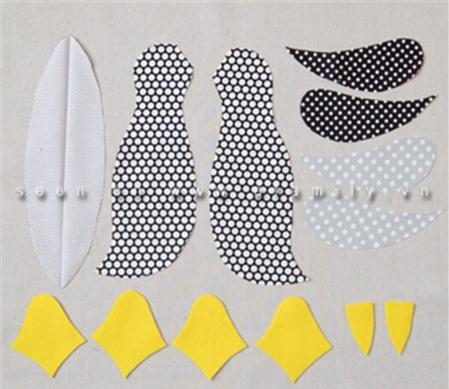 - 1 mảnh vải màu vàng chất liệu tương tự để làm chân vịt.