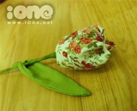 Sau khi khâu lá vào cho cành hoa tulip thì bạn đã hoàn thành bông hoa tulip vải này rồi đấy. Để làm bông hoa tulip vải này, bạn có thể tận dụng