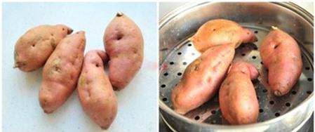 cũ chà nhẹ bên ngoài lớp vỏ cho thật sạch sẽ. Đem cho vào xửng hấp chín.