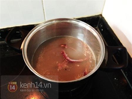 Chú ý: Khi nước sôi, các bạn hớt bỏ bọt bẩn để nước được trong nhé!