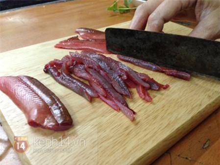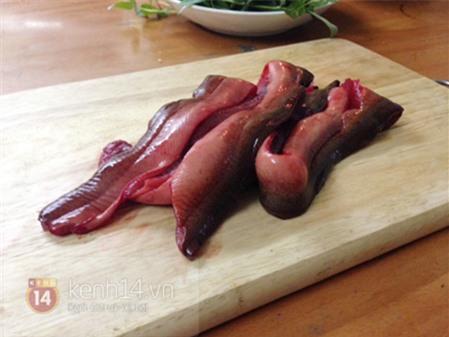 Nếu thái miếng lươn to một chút thì khi ăn, các bạn sẽ cảm nhận được rất rõ vị của thịt lươn.