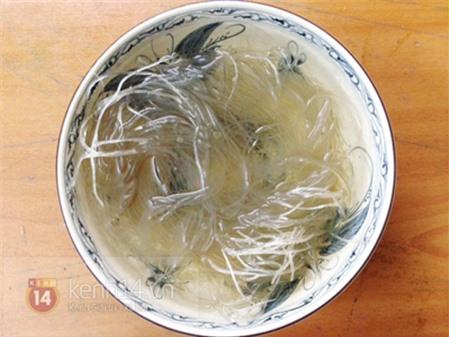 - Trước tiên, chúng ta cần ngâm miến vào nước cho mềm.