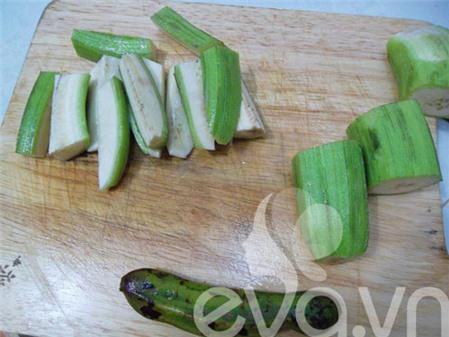 Me cạo sạch vỏ, chuối xanh tước vỏ ngoài thái con chì.