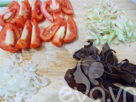 Trộn đều mộc nhĩ, nấm hương, cà chua