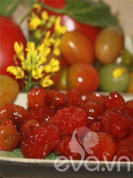 Mứt cà chua bi không chỉ ngon mà còn có màu đỏ rất bắt mắt.