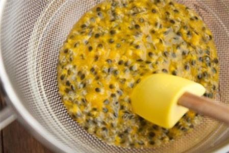 : Chanh leo bổ ra, lọc hạt qua một cái rây, thu lấy nước cốt.