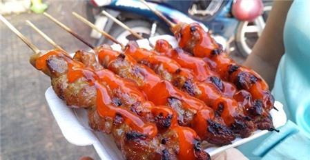 Đối với mỗi người Hà Nội, được thưởng thức những que thịt xiên nướng vào buổi chiều tan tầm là một thú vui không ở đâu có được. Những quán thịt xiên nướng ven đường, chỉ cần một bếp than hoa được thiết kế cao cao đủ để vừa tầm của người bán hàng, thêm thùng thịt nướng được ướp sẵn và nướng nghi ngút khói là khiến người qua đường khó có thể cầm lòng mà phải dừng lại để thưởng thức 1, 2 que thịt nướng.