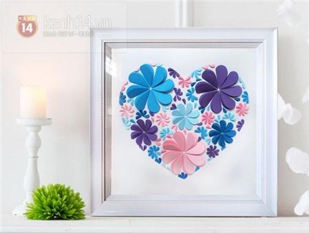 Chẳng cần mất quá nhiều công sức, bạn có thể tự làm tranh 3D hình trái tim hoa được rồi đấy, hiệu ứng họa tiết 3D của những bông hoa làm cho bức tranh thêm lung linh hơn. Cách làm tranh 3D