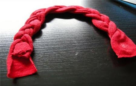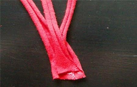 Cắt áo phông cũ thành ba dải dài khoảng 20 -22cm