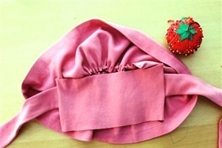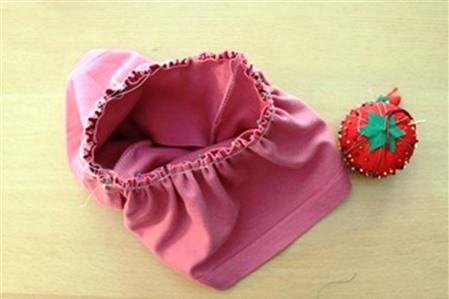 Mép cạp chun cũng được gập vào trong một lần nữa để không lộ mép vải không vắt sổ, chừa lại một khe nhỏ để luồn chun.