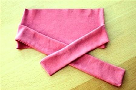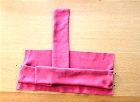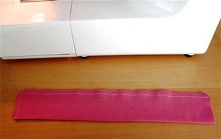Gập đôi hai dải vải theo mặt trái, gập hẹp chiều rộng lại.