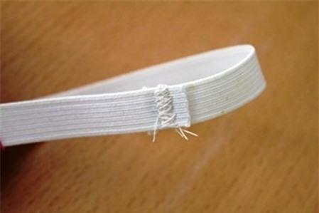 Dùng kim băng xỏ chun vào cạp chun, chú ý không để chun vặn xoắn trong cạp nhỏ.