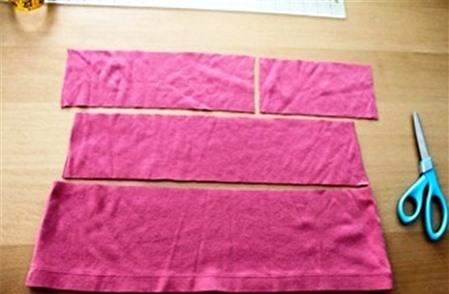 Phần vải thừa trên cùng bạn cắt thành 2 dải vải để may dây thắt nơ cho váy. Chiều rộng của dải vải là 10cm - 15cm, một dải vải dài 20cm và một dải vải dài 30cm - 35cm.