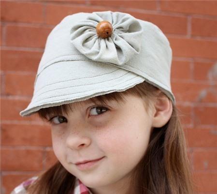Làm một kiểu hoa khác cùng chiếc cúc và tận dụng vải thừa từ việc may mũ lưỡi trai cũng rất tiện dùng để sáng tạo làm mũ cho bé đấy!