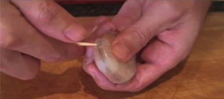 Dùng tăm nhọn chọc vào phần sống lưng tôm.