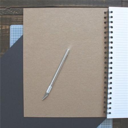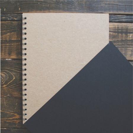 1 Đầu tiên, bạn ướm tấm giấy bìa vào bìa cuốn sổ sao cho cạnh chiều dài nằm chéo góc như hình. Sau đó, bạn miết nhẹ để đánh dấu phần giao nhau giữa tấm giấy bìa và cuốn sổ.