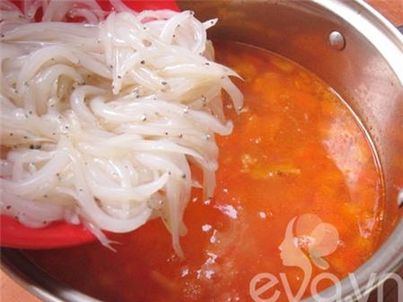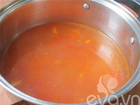 . Khi nước sôi thì chút cà đã xào nhuyễn vào, đun sôi trở lại.