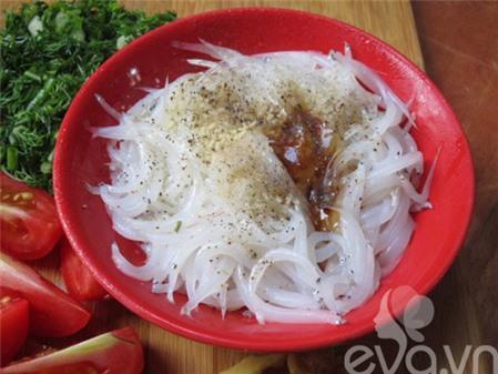 , đập dập. Hành, thì là nhặt rửa sạch, thái nhỏ.