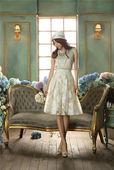 Chân váy xòe màu sắc trang nhã, thêm chiếc thắt lưng nhỏ nhắn tạo điểm nhấn và đôi giày cao gót giúp bạn cải thiện được chiều cao và vóc dáng một cách đáng kể.