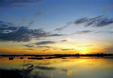 , đầm phá trải một màu vàng lấp lánh. Sóng nước chao động khi thuyền ngư ra đổ nò, sáo. Nếu mỏi mệt, hãy dừng chân ở những quán ăn nằm ven hồ nuôi tôm. Đây là một điểm du lịch mà Du Lịch Việt Nam