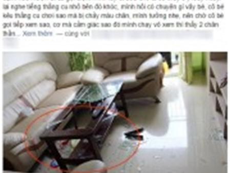 Thường xuyên trèo lên bàn thuỷ tinh chơi, em bé không ngờ một ngày tấm kính bị vỡ - vụ việc đang được hàng nghìn dân mạng chia sẻ.