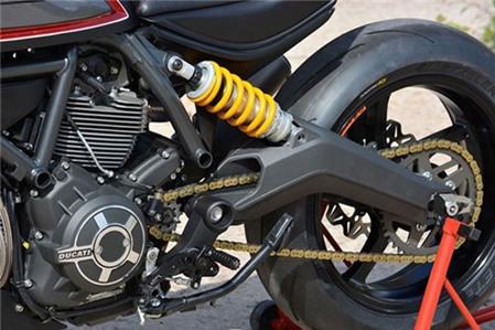Giảm xóc sau cũng của Ohlins. Xích D.I.D 520 kết hợp bộ nhông titan.