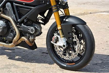 Cặp phuộc trước hành trình ngược của hãng Ohlin lấy từ 1199R Panigale. Vảnh 17 inch của OZ Racing kết hợp