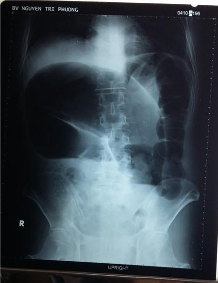 bị tắc ruột, các bác sĩ BV Nguyễn Tri Phương cho bệnh nhân chụp X-quang, CT bụng và xác định bệnh nhân bị “Xoắn đại tràng