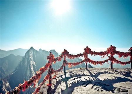 Hoa Sơn không chỉ là nơi thử thách lòng kiên trì mà còn là nơi chứng tỏ tình yêu đôi lứa. Những đoạn dây cáp căng bên vực sâu dọc lối mòn dẫn lên đỉnh Hoa Sơn phủ với màu đỏ rực của nhiều mảnh vải cùng chiếc ổ khóa - minh chứng tình yêu của các đôi uyên ương.