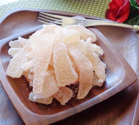 Khi hoàn thành, mứt cùi bưởi có vị the mát, ngọt ngọt rất dễ chịu.