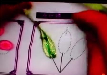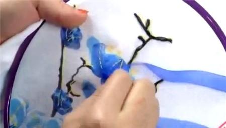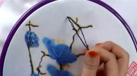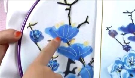 Bạn thực hiện thêu cành như vậy là hoàn thành, bây giờ thực hiện với mẫu hoa theo chỉ tay