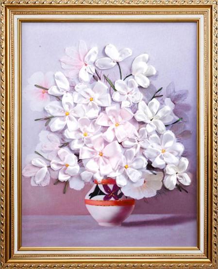 Những cánh hoa thêu ruy băng trở nên thật hơn, có chiều sâu hơn tranh thêu chữ thập nhiều. Nhìn bức tranh ở bên cao, đôi lúc người xem có cảm giác những bông hoa đang rung rinh, tỏa hương trong căn phòng.