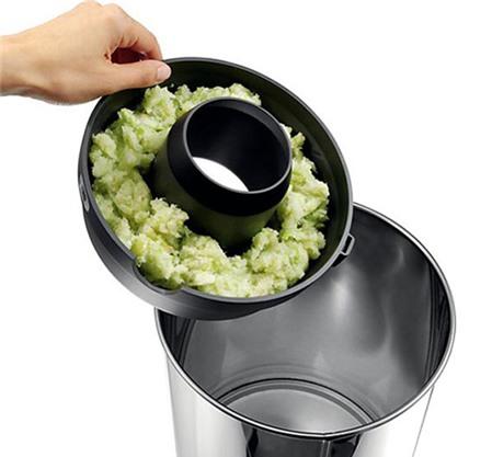 Tất cả các bộ phận có thể tháo rời của máy đều dùng được với máy rửa bát. Và nhờ hệ thống ép nước sáng tạo với chiếc sàng lộn ngược, máy ép