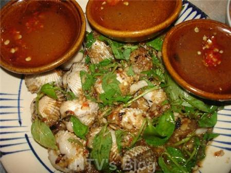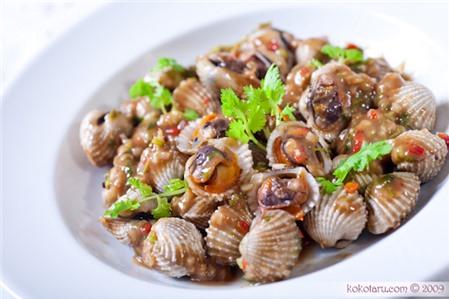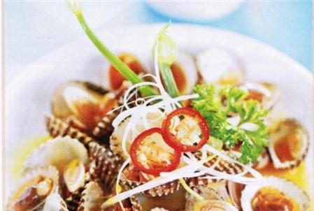 Sò huyết trần nước sôi ăn kèm mù tạt.