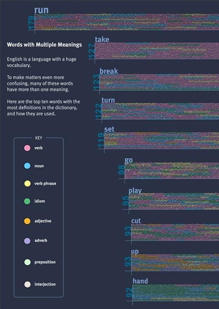 "Run" chứa 179 nghĩa, có thể đóng vai trò của một động từ, danh từ, cụm động từ (phrasal verb) và thành ngữ (idiom).
